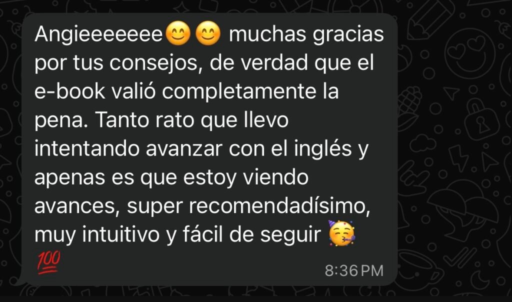 Aprendí inglés desde cero en 6 meses, sin memorizar ni reglas complicadas. Esa experiencia me llevó a compartir mi método, que hoy ya ha ayudado a más de 27.000 personas a entender y hablar inglés con confianza.